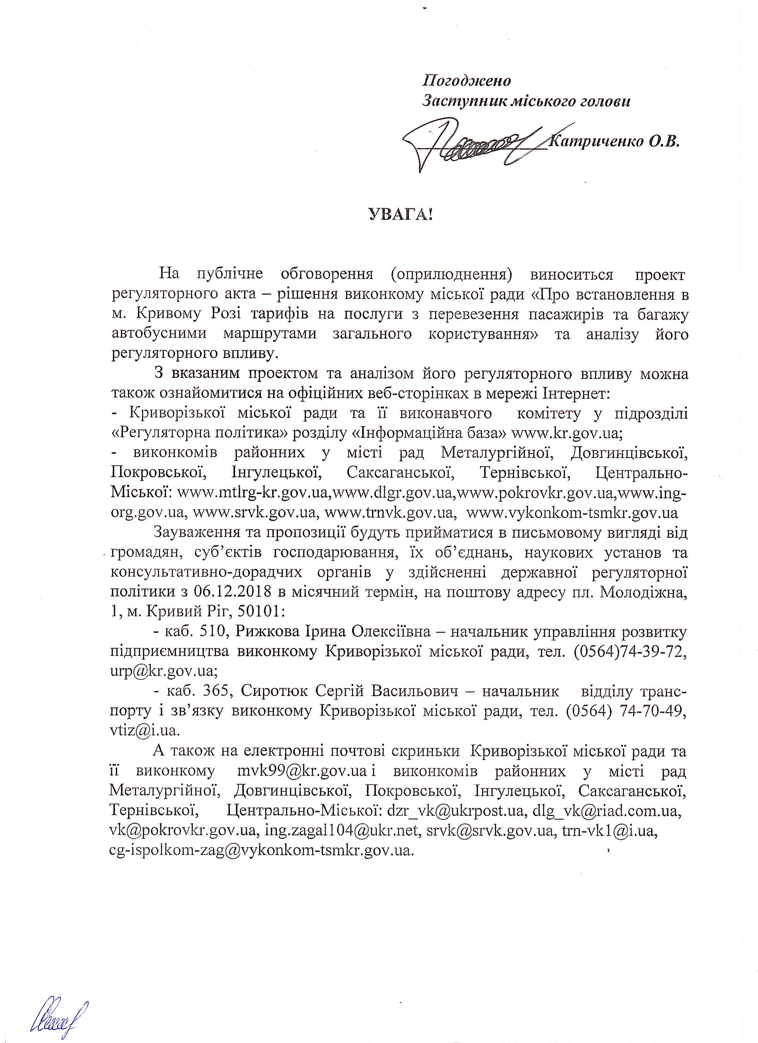 Про встановлення в м. Кривому Розі тарифів на послуги з перевезення пасажирів та багажу автобусними маршрутами загального користування