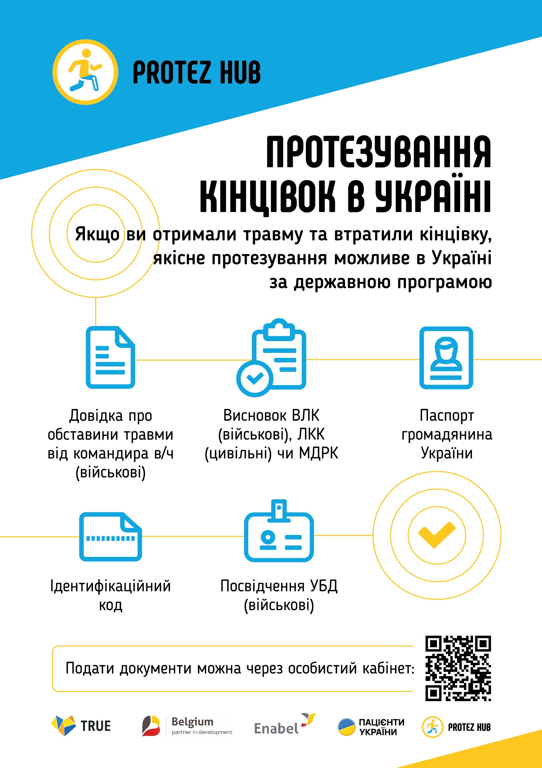 Благодійна організація «Благодійний фонд «ПРОТЕЗ ХАБ» (Protez Hub) разом з Міністерством цифрової трансформації України, Міністерством соціальної політики, сім’ї та єдності України та Фондом соціального захисту осіб з інвалідністю інформують ветеранів та ветеранок Дніпропетровської області про державну програму протезування верхніх та нижніх кінцівок – від підготовки кінцівки до механізмів забезпечення додатковими засобами реабілітації (протезами, ортезами, допоміжними засобами реабілітації).