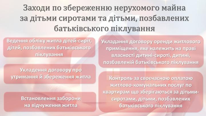 Під час семінару були висвітлені питання, які стосувалися постановки дітей-сиріт, дітей, позбавлених батьківського піклування, на квартирну чергу, які перебувають закордоном; особливості збереження житла в умовах воєнного стану; своєчасного оформлення спадщини на дітей-сиріт, дітей, позбавлених батьківського піклування; надання органами опіки та піклування дозволів на відчуження житла, де право власності чи право користування мають діти; стан претензійно-позовної роботи стосовно житла дітей-сиріт, дітей, позбавлених батьківського піклування.