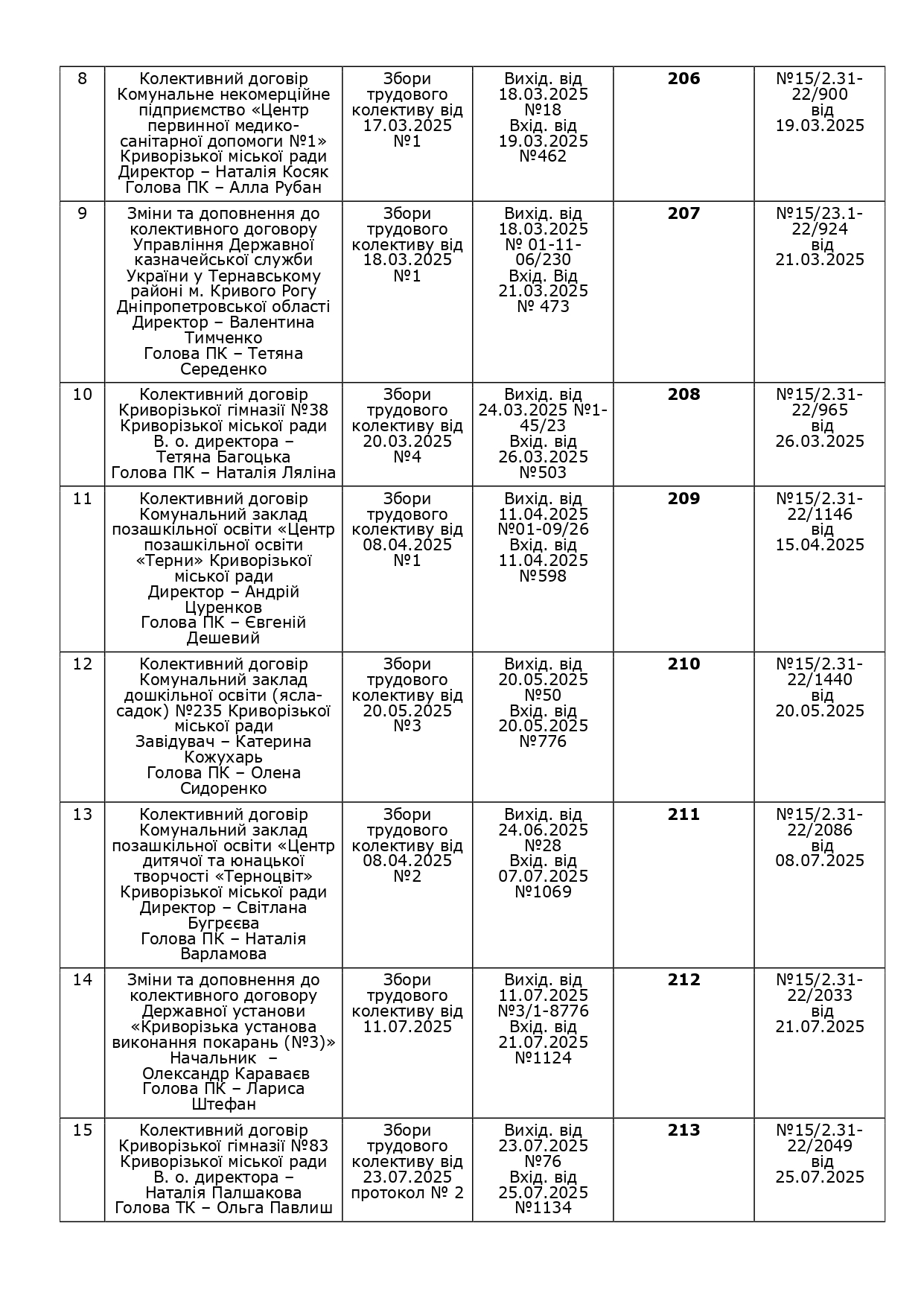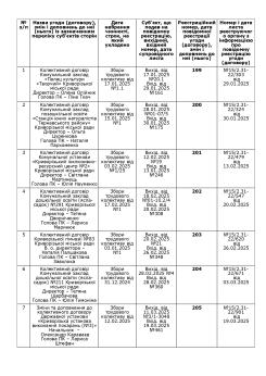 РЕЄСТР галузевих (міжгалузевих), територіальних угод, колективних договорів, змін і доповнень до них за 2025 рік