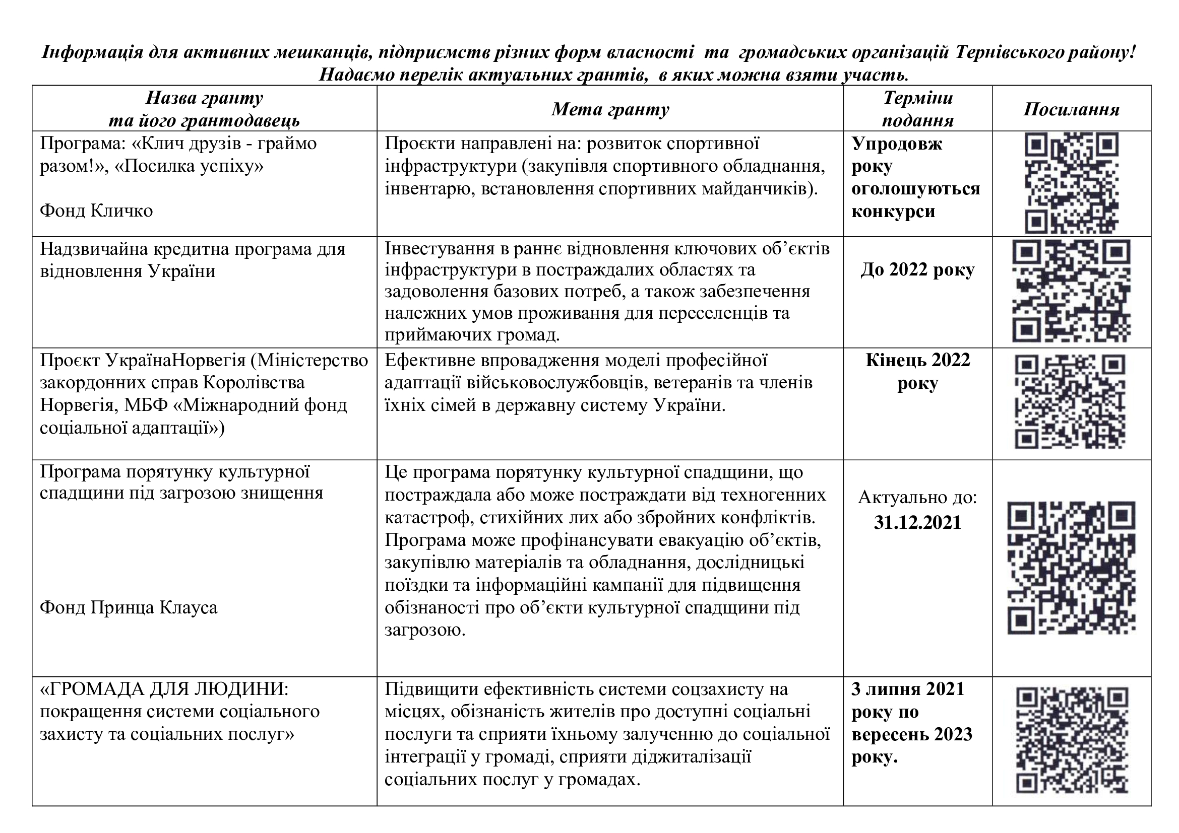 Інформація для активних мешканців, підприємств різних форм власності та громадських організацій Тернівського району!