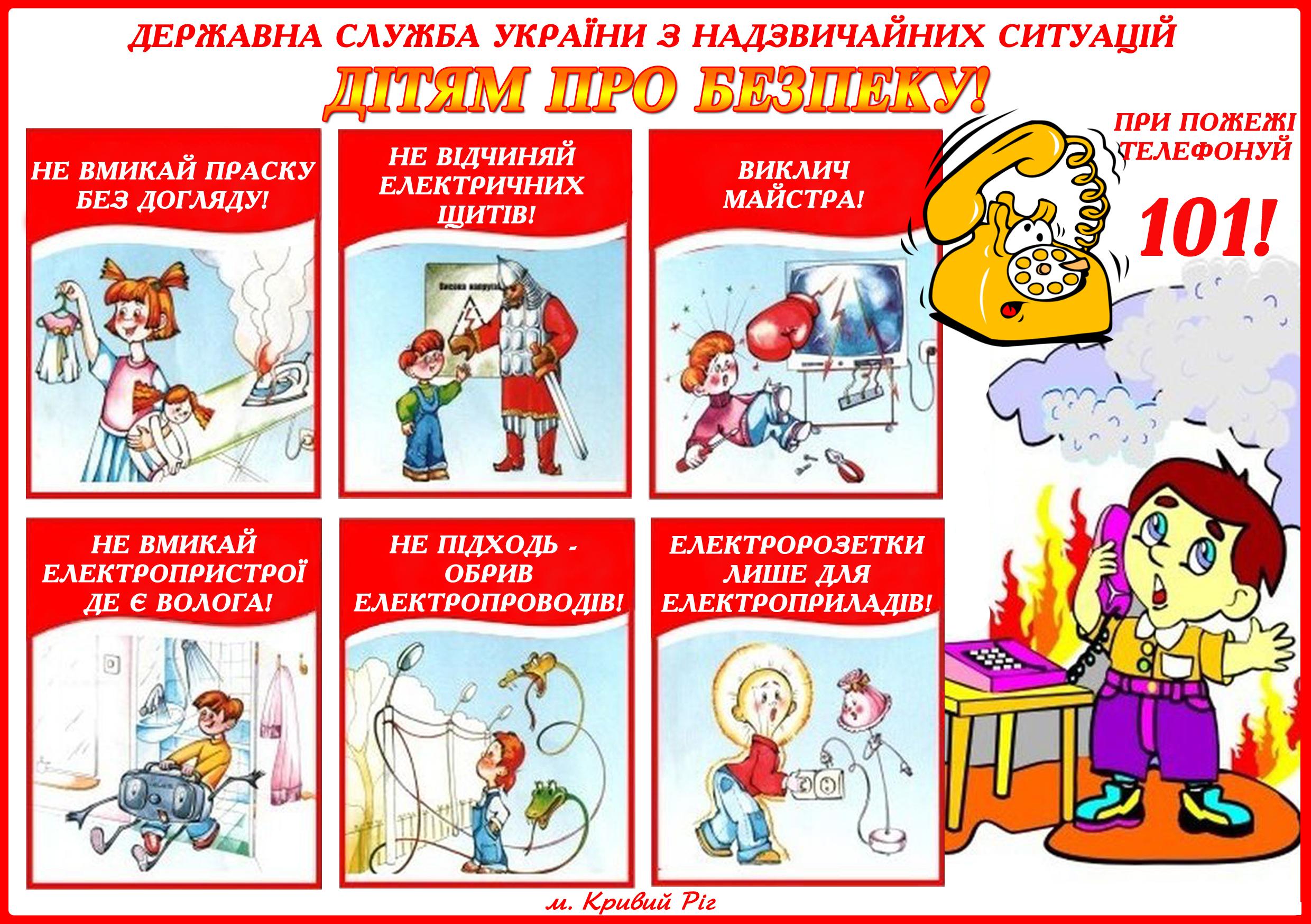 - у випадках пожежі або іншої надзвичайної ситуації необхідно викликати Службу порятунку по телефону «101»;