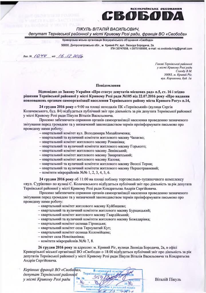 Інформація про виконання бюджету Тернівського району у місті Кривий Ріг