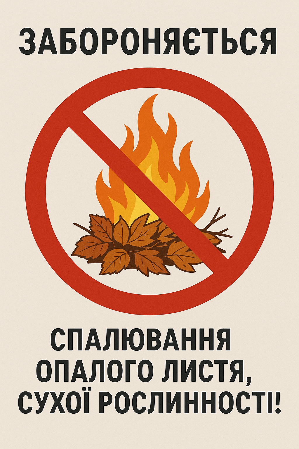 Виконком районної у місті ради попереджає громадян, що чинним природоохоронним законодавством України заборонено спалювання опалого листя й сухої рослинності. За вчинення таких порушень передбачена адміністративна відповідальність: