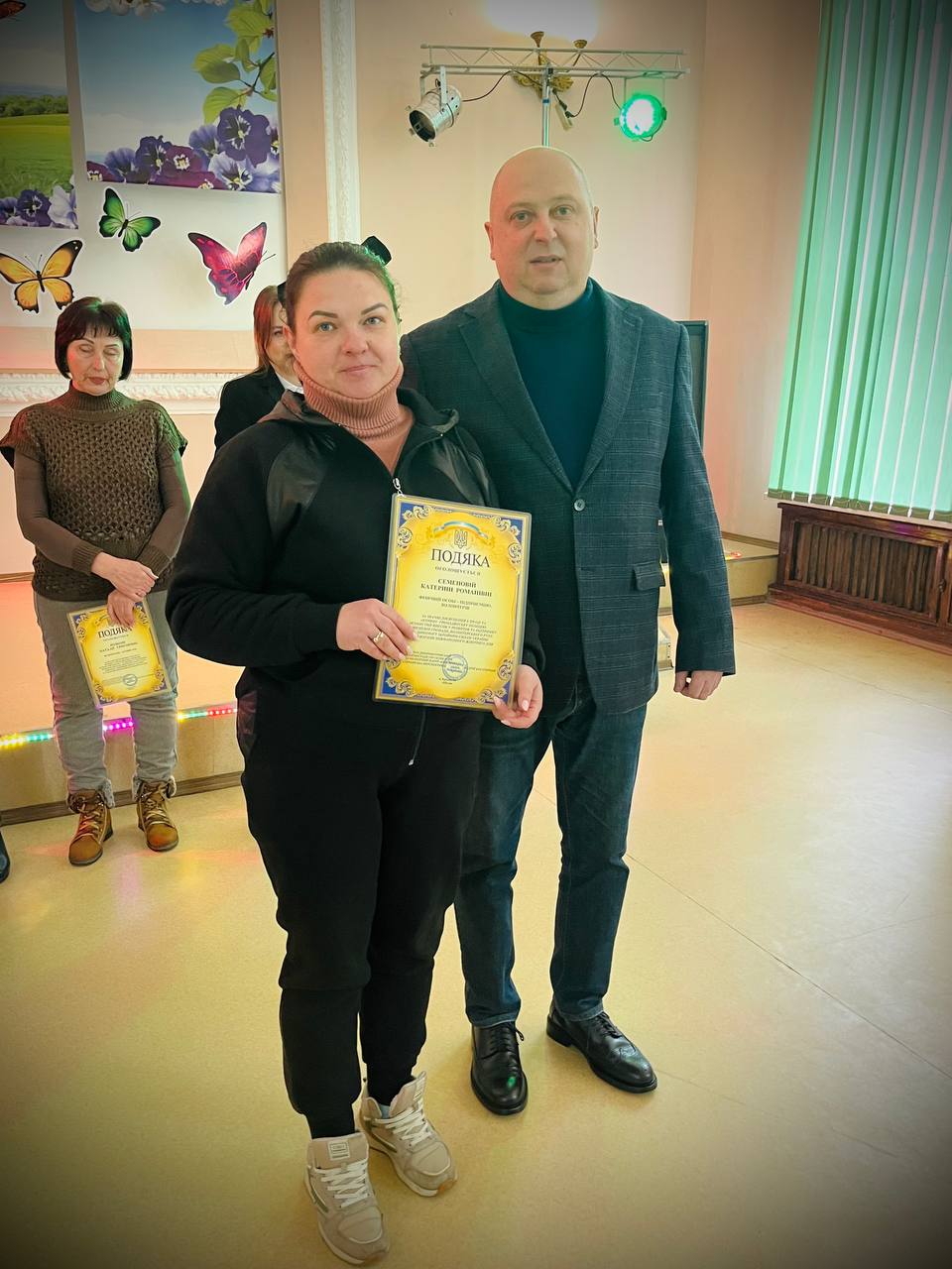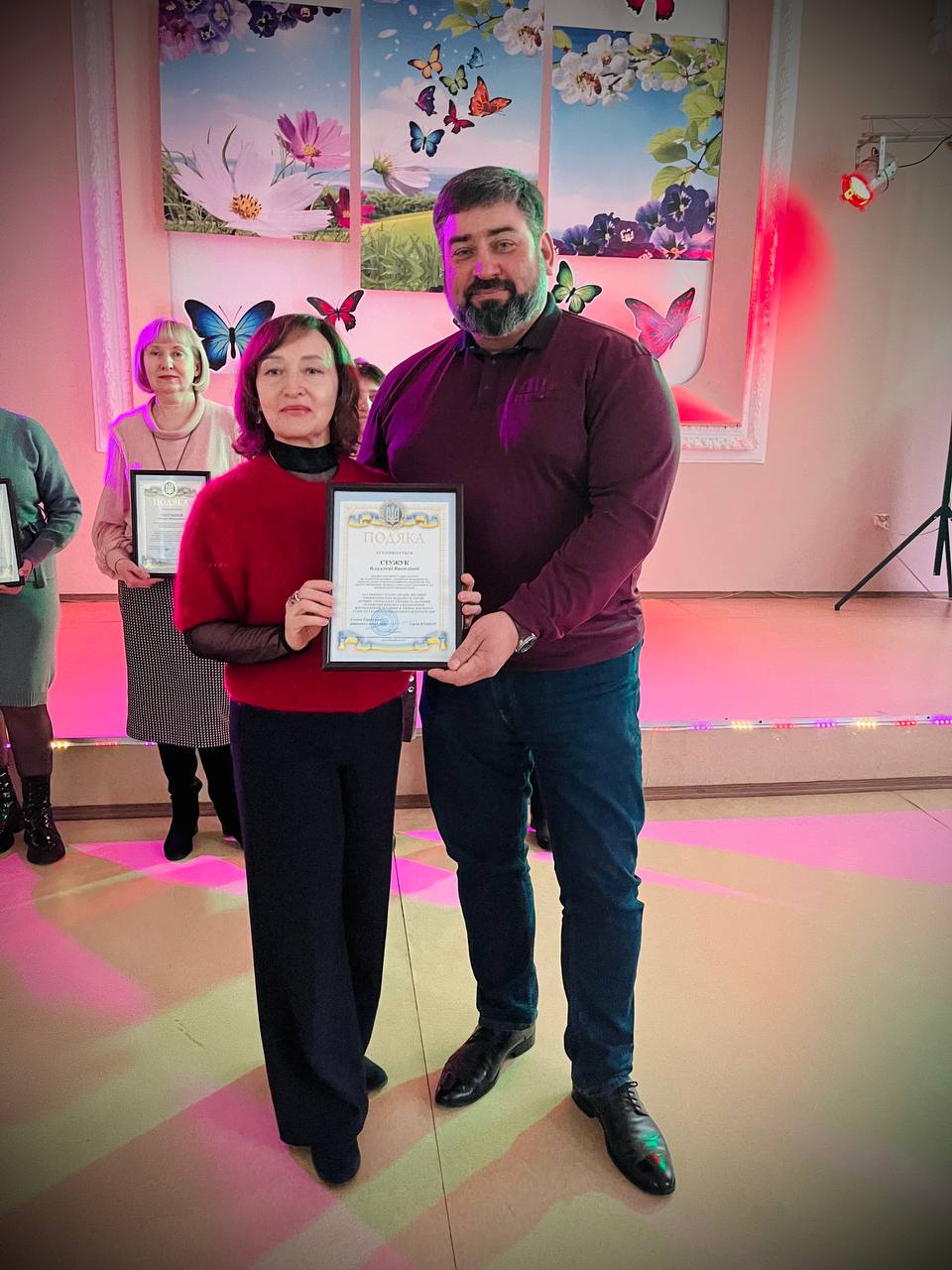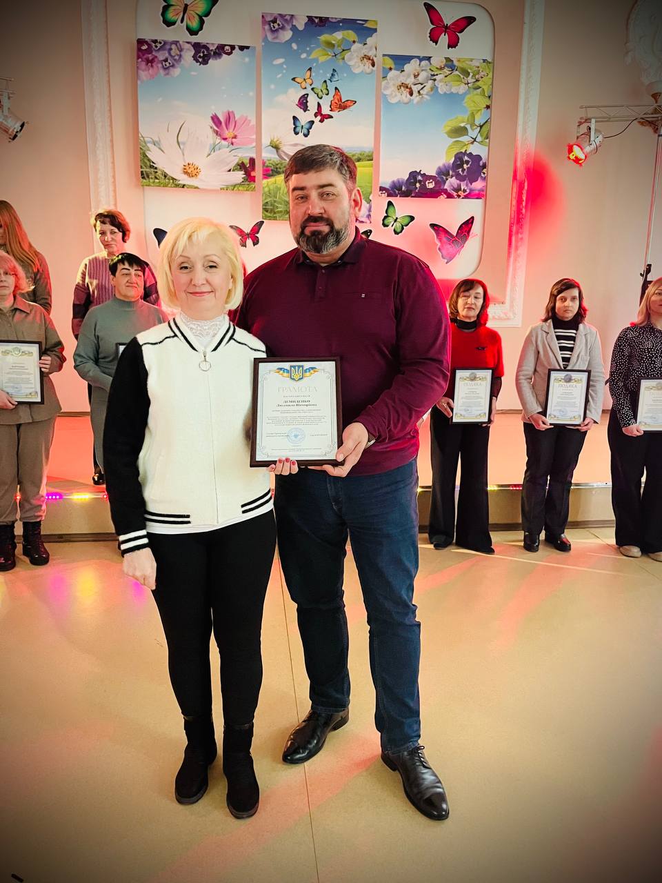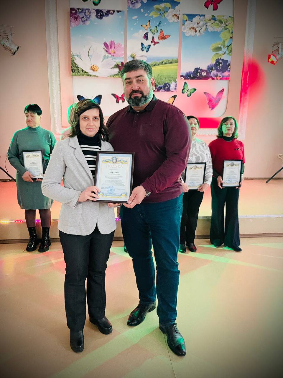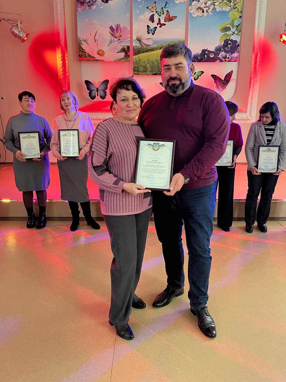 Найкращі представниці трудових колективів підприємств, установ, організацій, закладів району, волонтерки, які активно допомагають Збройним силам України були нагороджені відзнаками виконавчих комітетів Криворізької міської та Тернівської районної у місті рад, подяками депутата обласної ради Андрія Богатирьова.