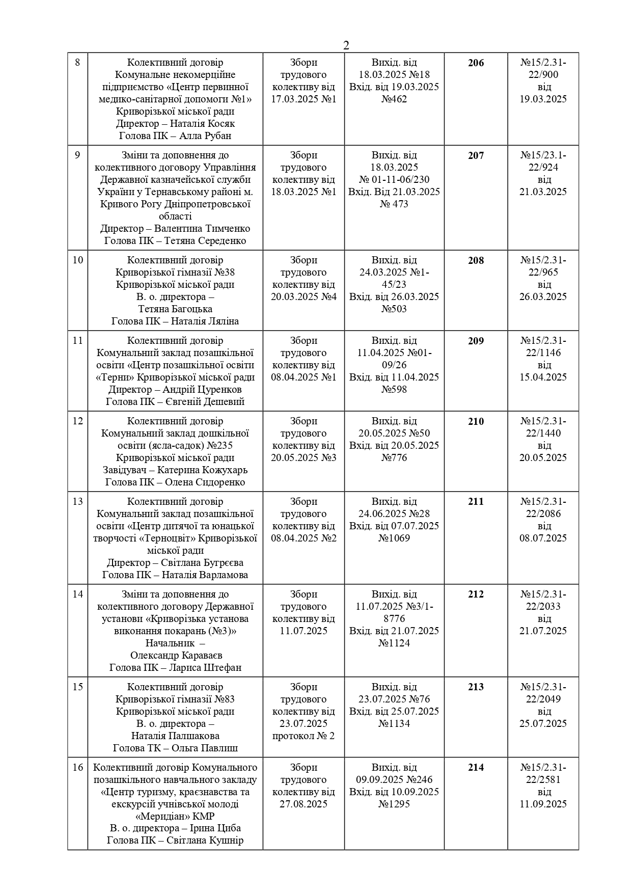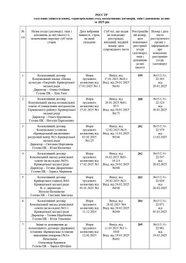 РЕЄСТР галузевих (міжгалузевих), територіальних угод, колективних договорів, змін і доповнень до них за 2025 рік