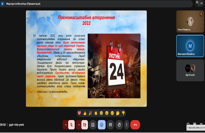 З метою формування у молодого покоління активної громадянської позиції, розвитку патріотичної свідомості та вшанування подвигу Захисників та Захисниць України у закладах фахової передвищої та професійно-технічної освіти пройшли тематичні інформаційно-просвітницькі та виховні заходи, присвячені темі «Війна за незалежність у контексті нової генерації гібридних воєн.