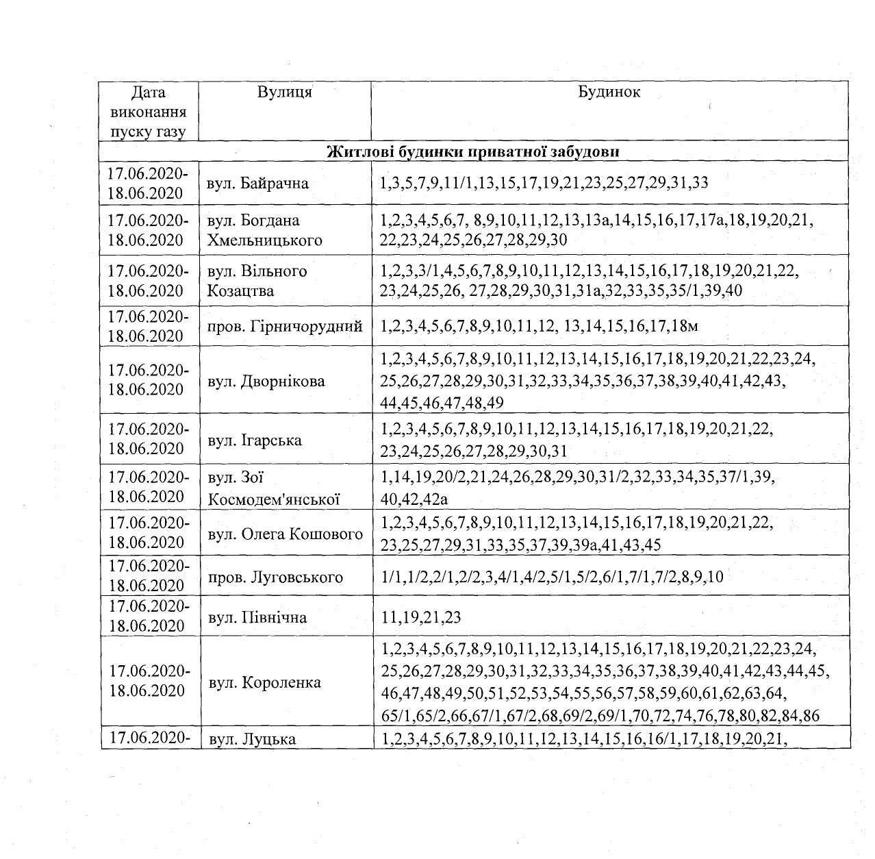 Після виконання ремонтних робіт відновлення газопостачання буде здійснюватись за наступним графіком: