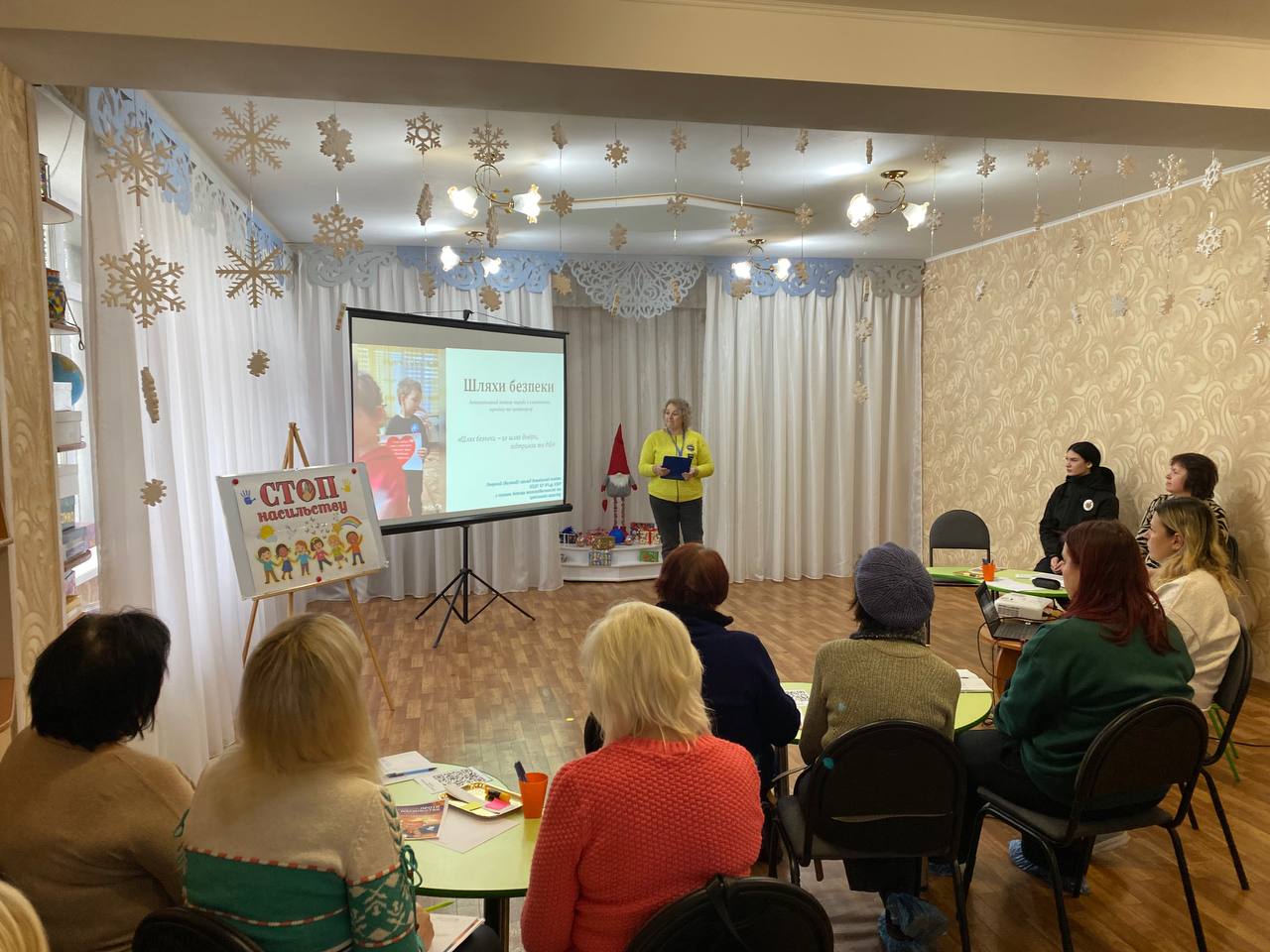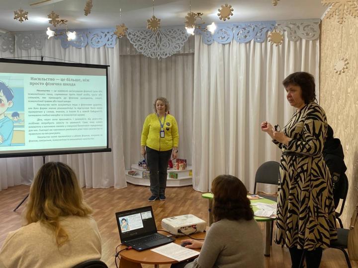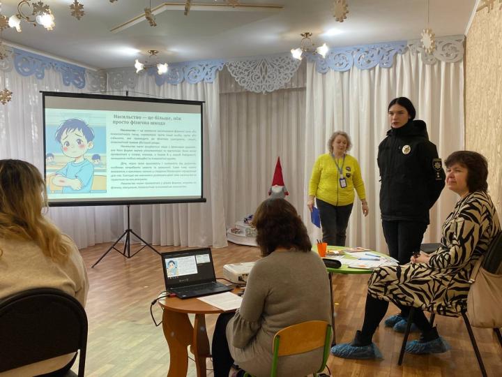 Серед учасників заходу — Л.В. Таргоній, головний спеціаліст відділу освіти виконкому Тернівської районної у місті ради, яка підкреслила необхідність постійного підвищення рівня обізнаності педагогів щодо проблеми насильства над дітьми, жінками та вразливим групам населення.